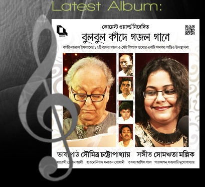 Somerita Mallik, a well-known singer of Nazrulgeeti of this generation, started learning music from her mother Surupa Mallik. Now, she is taking ‘talim’ from Smt. Aparajita Ghosh, Shri Krishnendu Bhattacharya & Shri Subhankar Bhaskar. Somerita sang for 5 music albums which were released from different music companies. 1. Tobu Bhalobasi, from Bihaan music (Album of Nazrulgeeti with Rabindranath Tagore's poem by Sumantra Sengupta) 2.Thamma, Tomar Songe, from Bihaan Music (Album of Rabindra Sangeet with talk theatre for Children by Urmimala Bose) . . . . . . . |